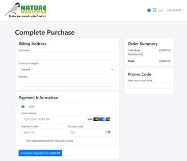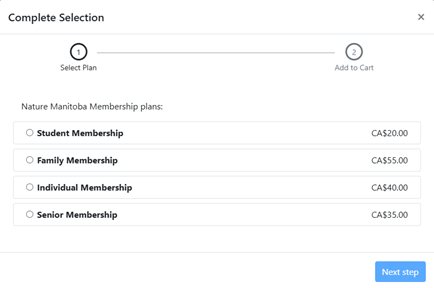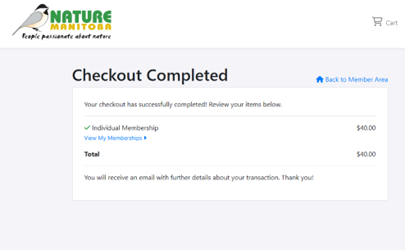 A membership will be added to the shopping cart. “Checkout” to complete the process | ![]() |