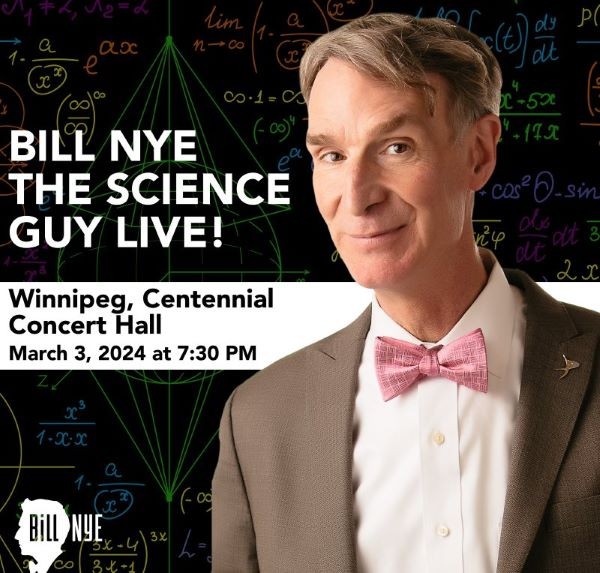 Bill Nye the Science Guy is coming to town and our members can win a pair of tickets by emailing contest@naturemanitoba.ca with their full name, phone number and email address. Contest entry deadline is February 19th, 2024 and the winner will be chosen by random draw and notified within 48 hours. General contest rules.