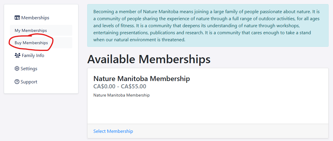 Once the password has been reset, select “Buy Membership” | ![]() |