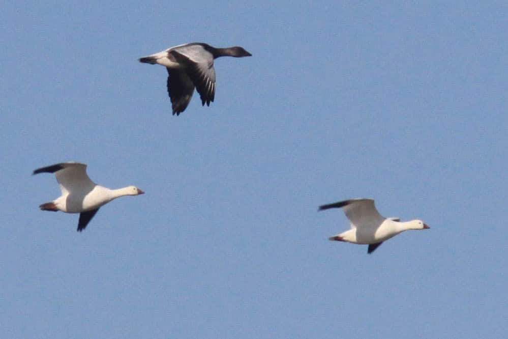 In autumn, you can find Ross’ Goose at Whitewater Lake and Oak Hammock Marsh. You may also be able to pick out a Ross’ Goose or two by carefully looking through flocks of Snow Goose on staging grounds throughout southern Manitoba (areas where hundreds to many thousands of birds stop to feed, and rest, before continuing their migration).