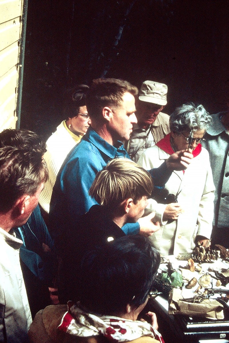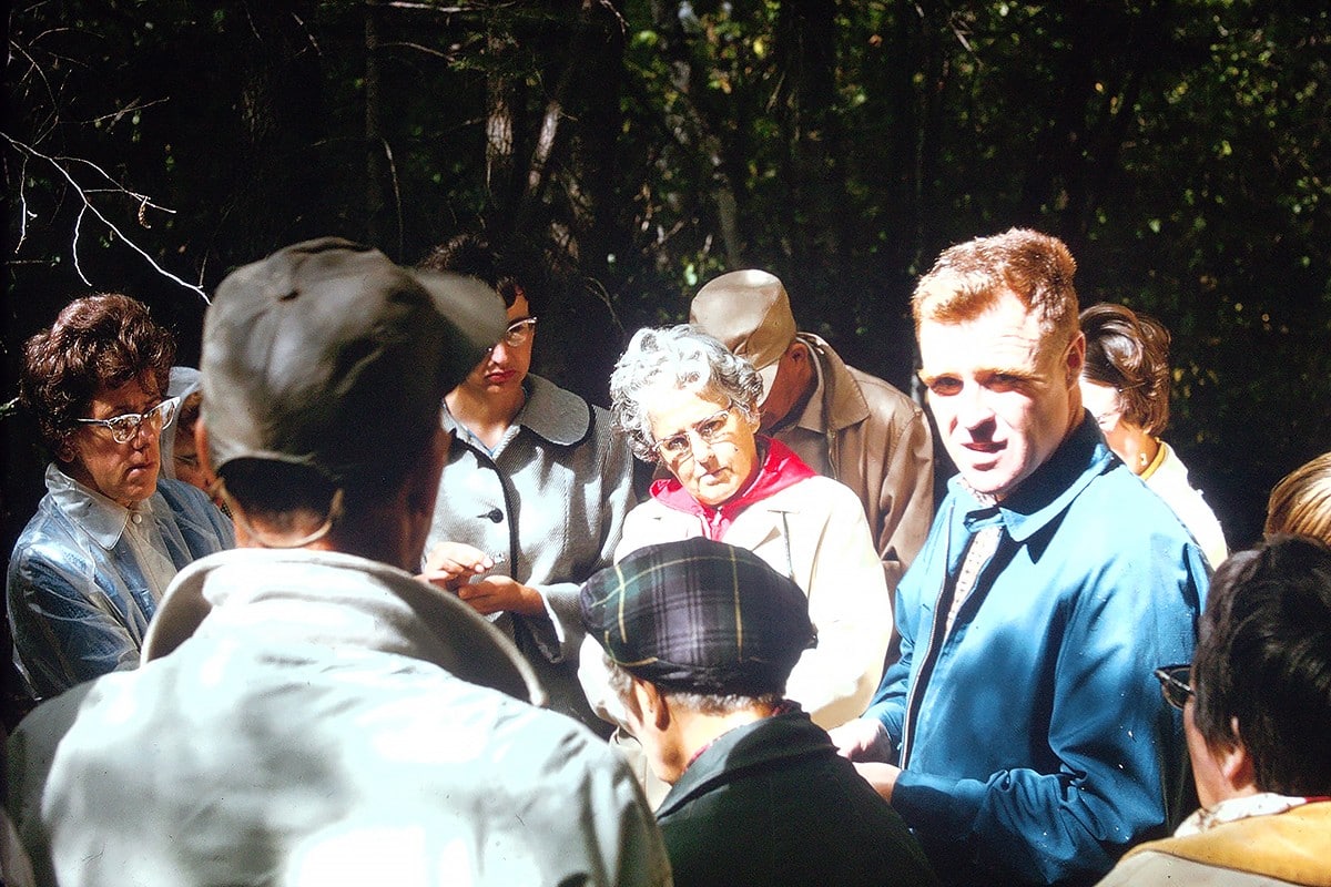 Above: Indoor Program workshops sometimes include a hands-on outdoor event like this mushroom identification outing at Victoria Beach, 1967 (from NM archives)